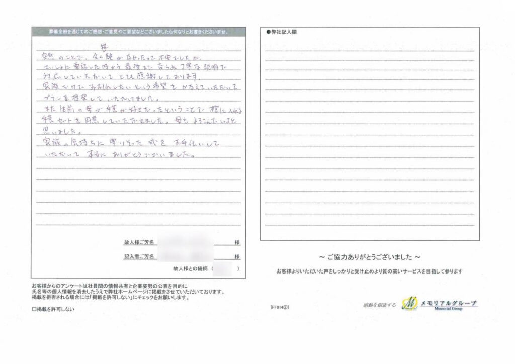 パンフレット、具体的な葬儀の流れがわかる資料など