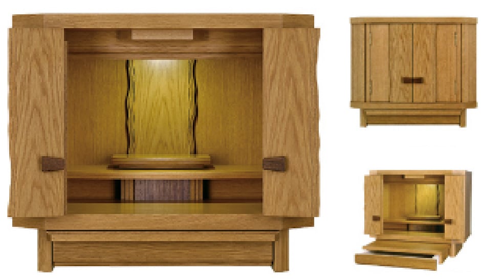形状はお仏壇の形でありながらも、家具のようにリビングや洋室に調和するため、近年とても人気が出てきています。