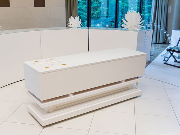 故人様を納めさせて頂くためのお棺です。プランに応じて「桐平棺」「布棺(布張棺」「彫刻棺」「刺繍棺」など様々な種類からご選択頂けます。