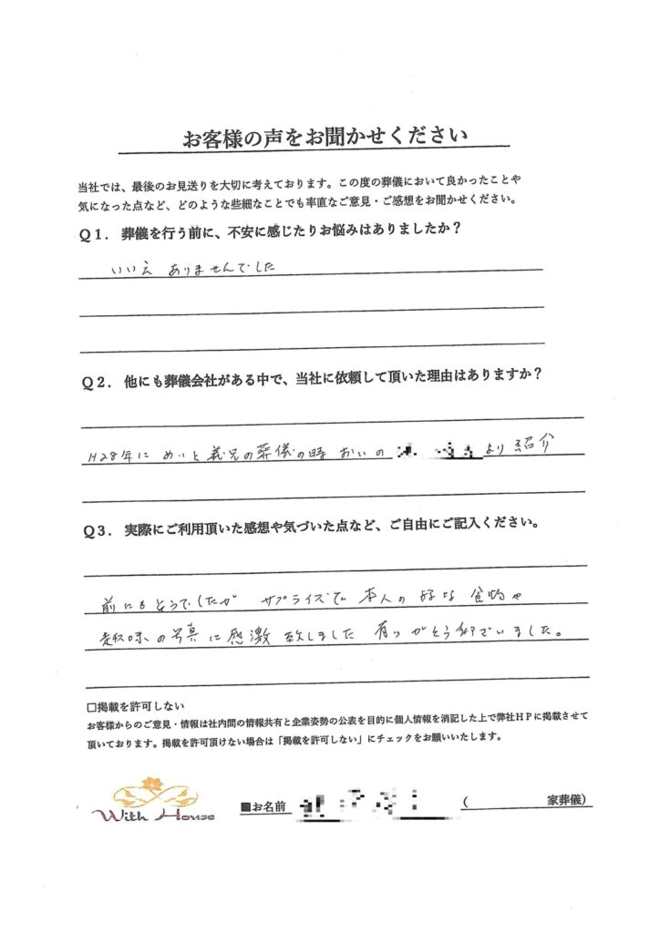 H28年にめいと義兄の葬儀の時、甥の〇〇より紹介