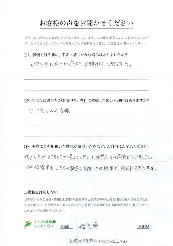 希望通りの葬儀ができました