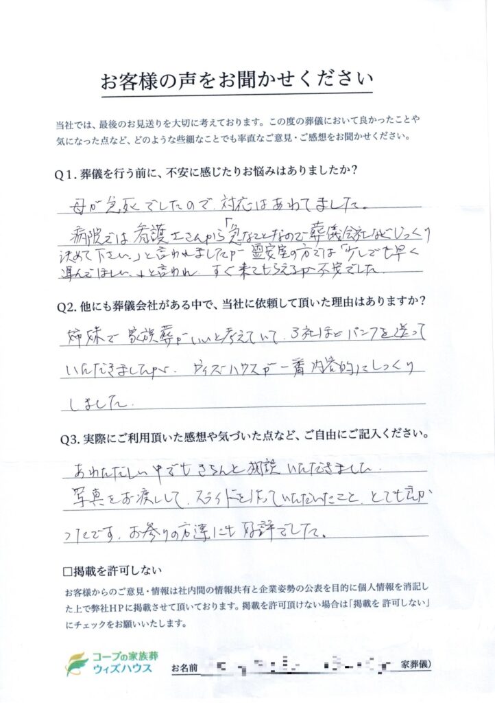 Q2.他にも葬儀会社がある中で、当社に依頼して頂いた理由はありますか?