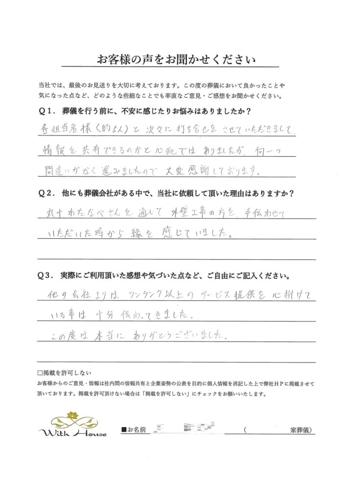 ◎他にも葬儀会社がある中で当社に依頼して頂いた理由はありますか?
