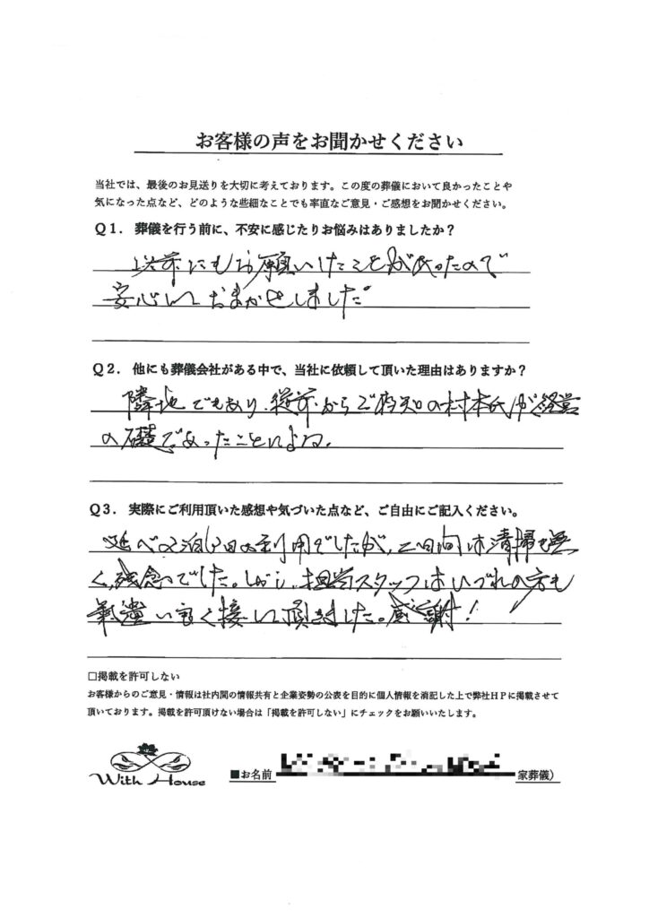 Q2.他にも葬儀会社がある中で、当社に依頼して頂いた理由はありますか?