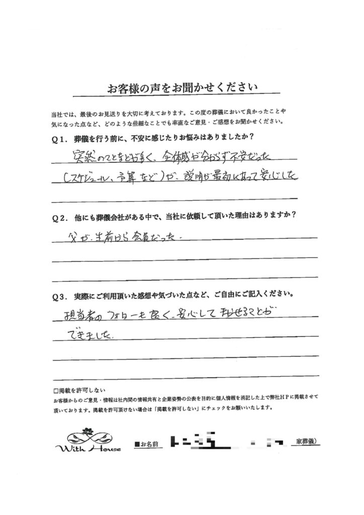 Q2.他にも葬儀会社がある中で、当社に依頼して頂いた理由はありますか?