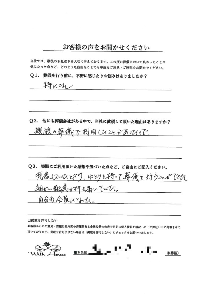 想像していた通りゆとりを持って葬儀を行うことが出来た。