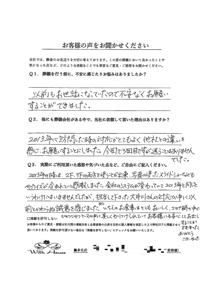Q2.他にも葬儀会社がある中で、当社に依頼して頂いた理由はありますか?