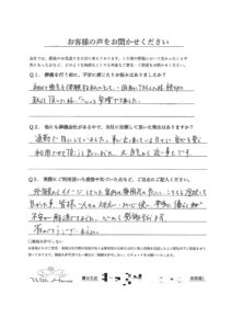 初めての事なので本当に不安でしたが、とても親切にしていただいき感謝してます。